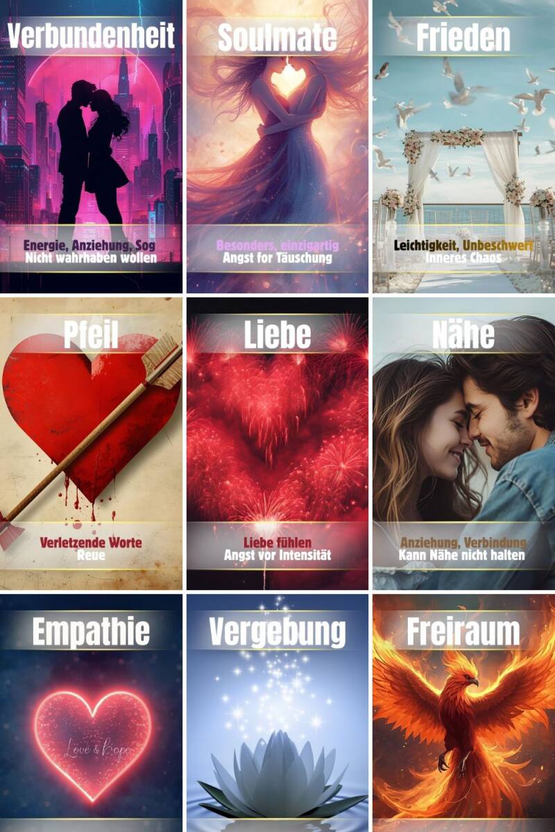 Diese Karten sind Tore der Heilung. Sie zeigen dir, welche Themen zwischen euch in Transformation sind, wo Loslassen oder Vergebung geschehen darf, und welche Energien sich gerade wandeln, um euer Band zu erneuern.